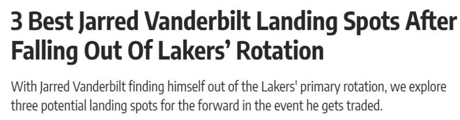 湖人送走范德比尔特?美媒列三大交易方案:艾萨克蒙克是理想目标